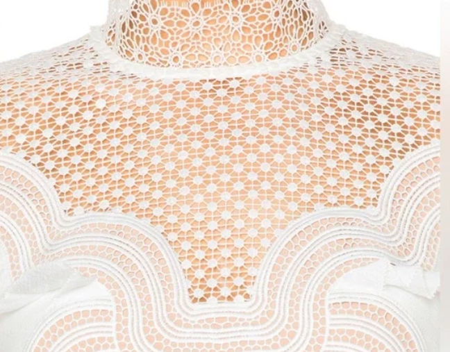New with tags, this Self-Portrait Wave Trim Mini Dress in cream is a chic, above-the-knee style perfect for modern occasions. Crafted with exquisite wave-trim detailing, this mini dress offers a flattering silhouette and feminine appeal. Ideal for parties, brunches, or special events, it combines contemporary design with signature Self-Portrait elegance.